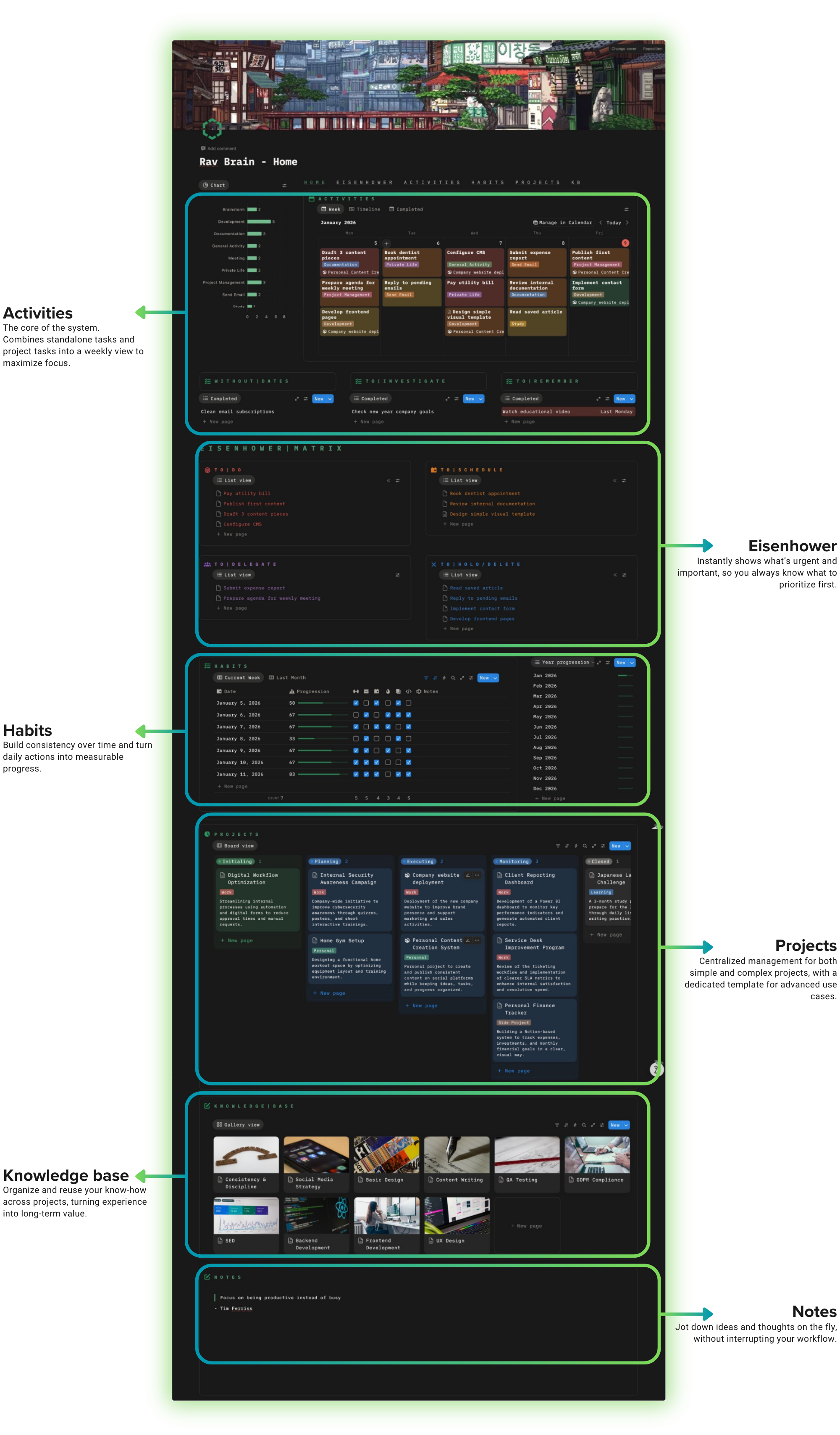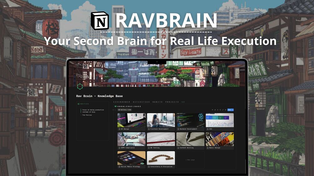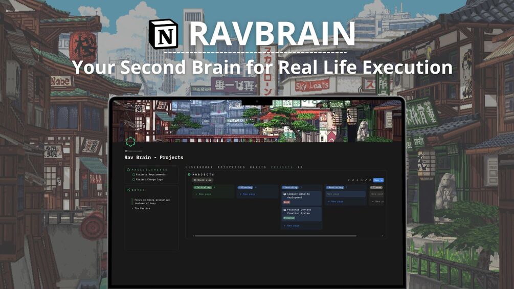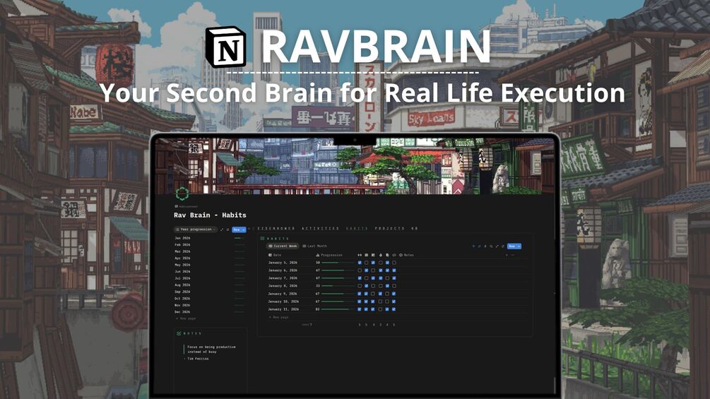 It is a Notion productivity system built around real life — not empty pages. With RavBrain you: